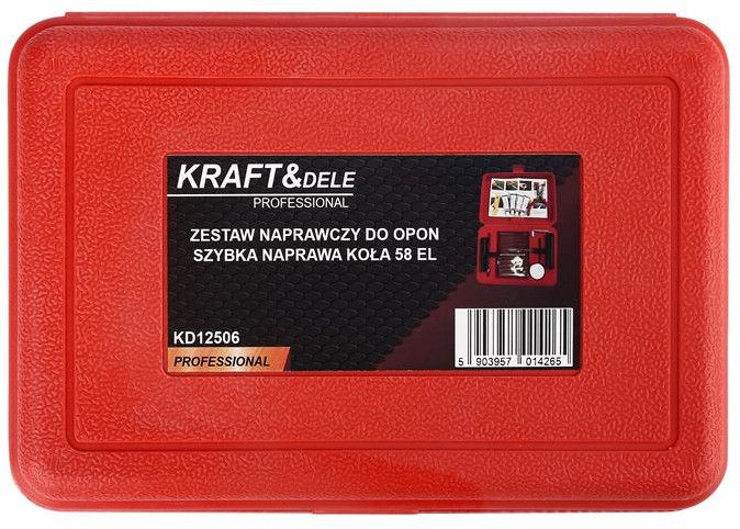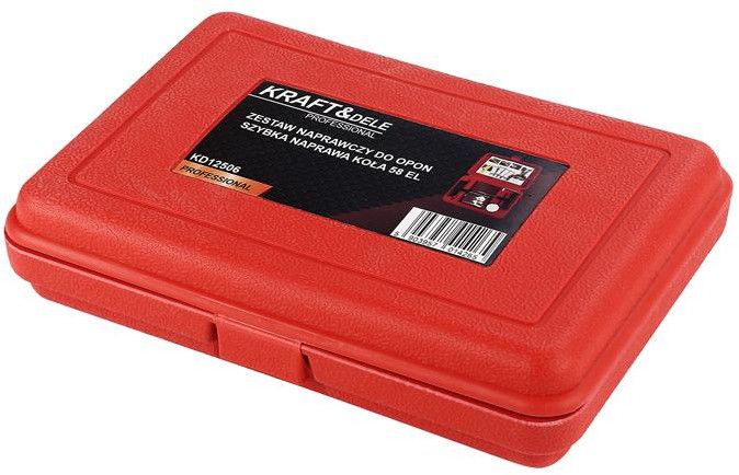 Sada na opravu pneumatík KD12506 od spoločnosti Kraft&Dele je kompletným riešením pre rýchlu a efektívnu opravu defektov v bezdušových pneumatikách. Je nevyhnutná v každom autoservise, pneuservise a v kufri vášho vozidla pre núdzovú cestnú asistenciu.