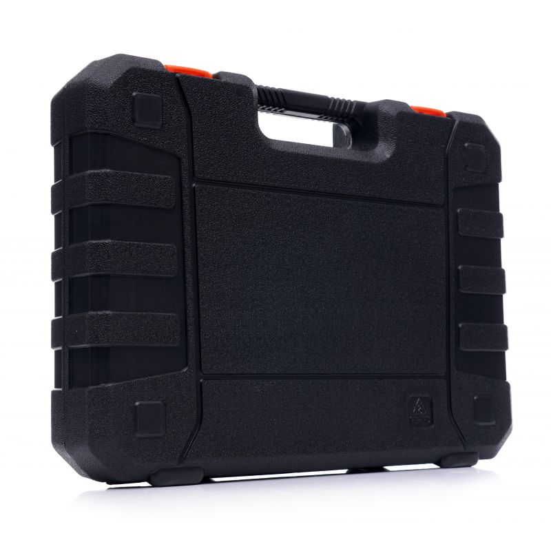 Kufor vyrobený z odolných plastov umožňuje udržiavať poriadok a jednoduché prenášanie náradia. Každý nástroj má určené miesto, kde jednoducho nájdete požadovanú veľkosť kľúča.