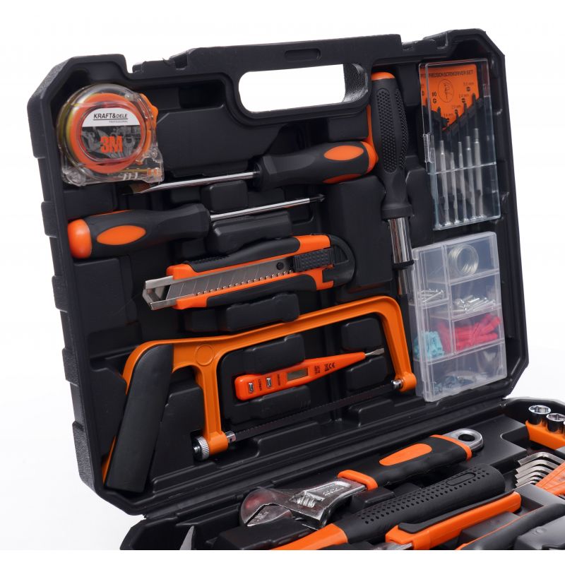 Mimoriadne rozsiahla sada nástrojov Kraft & Dele so symbolom KD10839. Náradie sa vyznačuje solídnym spracovaním, odolnými materiálmi a šikovným kufríkom, v ktorom má každé náradie svoje miesto.