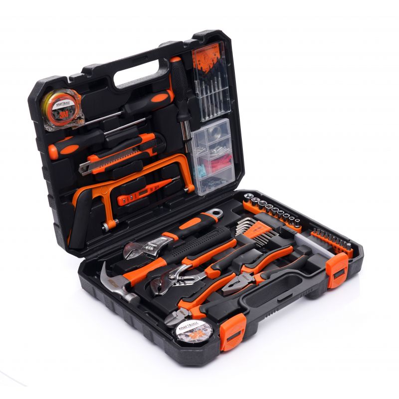 Celá sada pozostáva zo 100 rôznych prvkov, ktoré zabezpečia správny výber náradia pre vaše potreby. Náradie je vyrobené z kalenej chróm-vanádiovej (CrV) ocele určenej pre dielenské náradie. Chróm zaručuje oceli odolnosť voči korózii, oxidácii, oderu  a vysokú odolnosť voči vysokým teplotám. Prídavok vanádu inhibuje rast zŕn počas spracovania a zároveň zvyšuje ťažnosť tak kalených, ako aj temperovaných foriem.