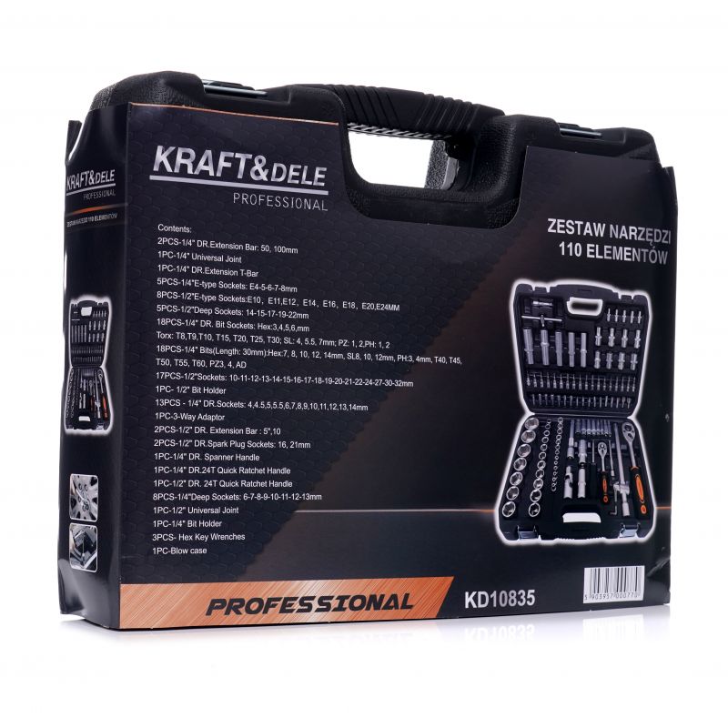 Mimoriadne rozsiahla sada nástrojov  Kraft & Dele  so symbolom  KD10835. Náradie sa vyznačuje solídnym spracovaním, odolnými materiálmi a šikovným kufríkom, v ktorom má každé náradie svoje miesto.