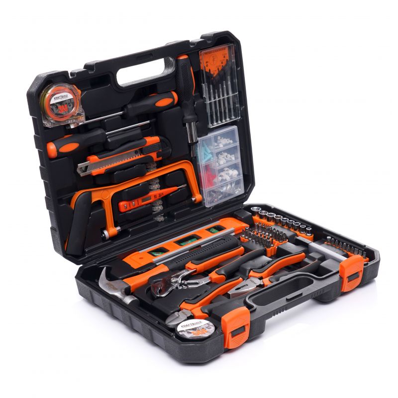 Celá sada pozostáva zo 100 rôznych prvkov, ktoré zabezpečia správny výber náradia pre vaše potreby. Náradie je vyrobené z kalenej chróm-vanádiovej (CrV) ocele určenej pre dielenské náradie. Chróm zaručuje oceli odolnosť voči korózii, oxidácii, oderu a vysokú odolnosť voči vysokým teplotám. Prídavok vanádu inhibuje rast zŕn počas spracovania a zároveň zvyšuje ťažnosť tak kalených, ako aj temperovaných foriem.