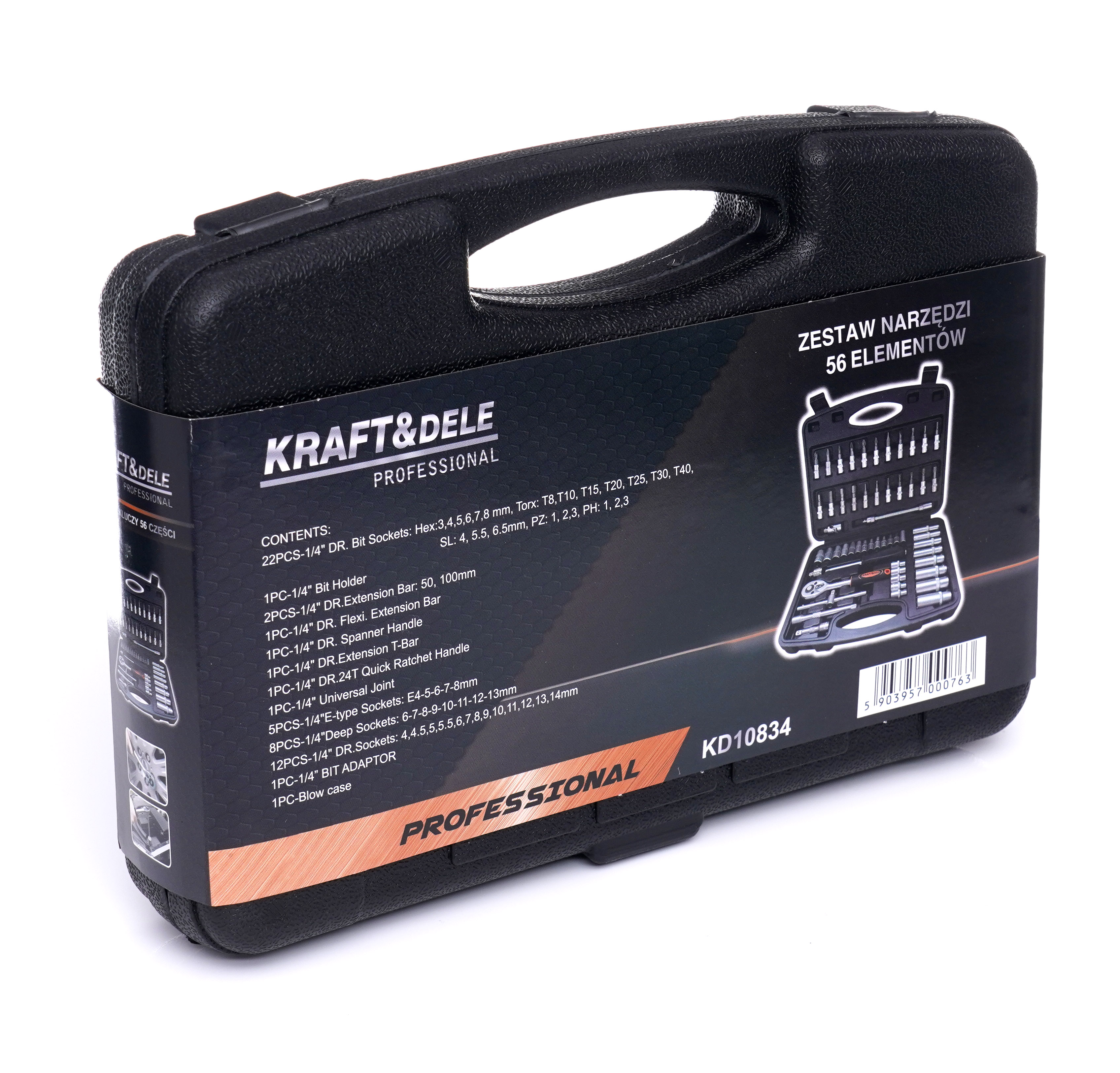 Mimoriadne rozsiahla sada nástrojov Kraft & Dele so symbolom KD10834. Náradie sa vyznačuje solídnym spracovaním, odolnými materiálmi a šikovným kufríkom, v ktorom má každé náradie svoje miesto.