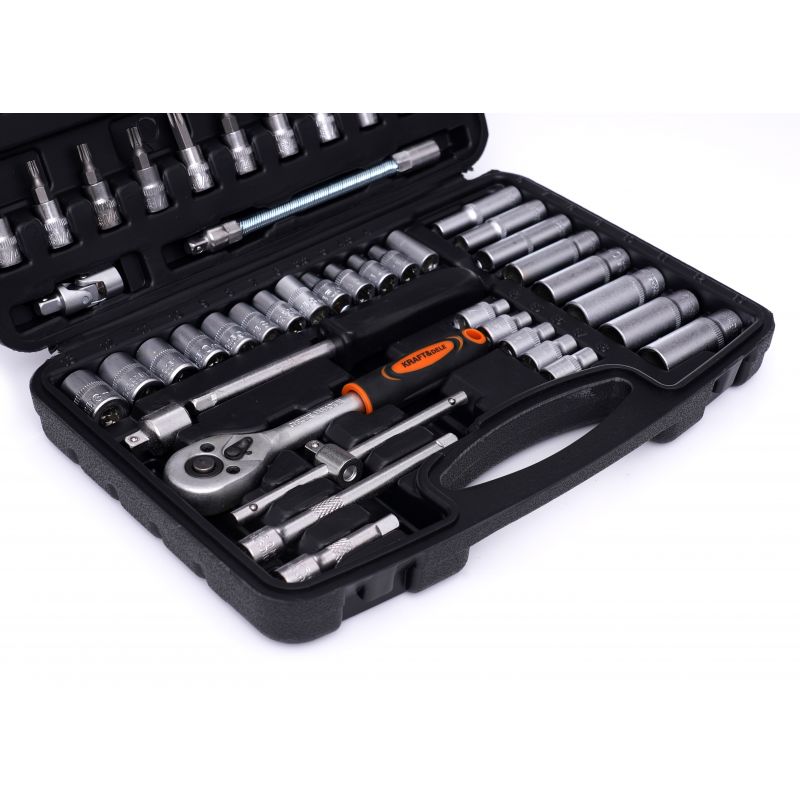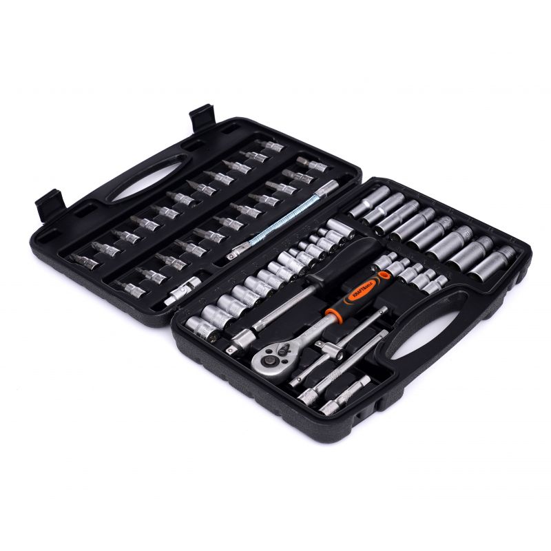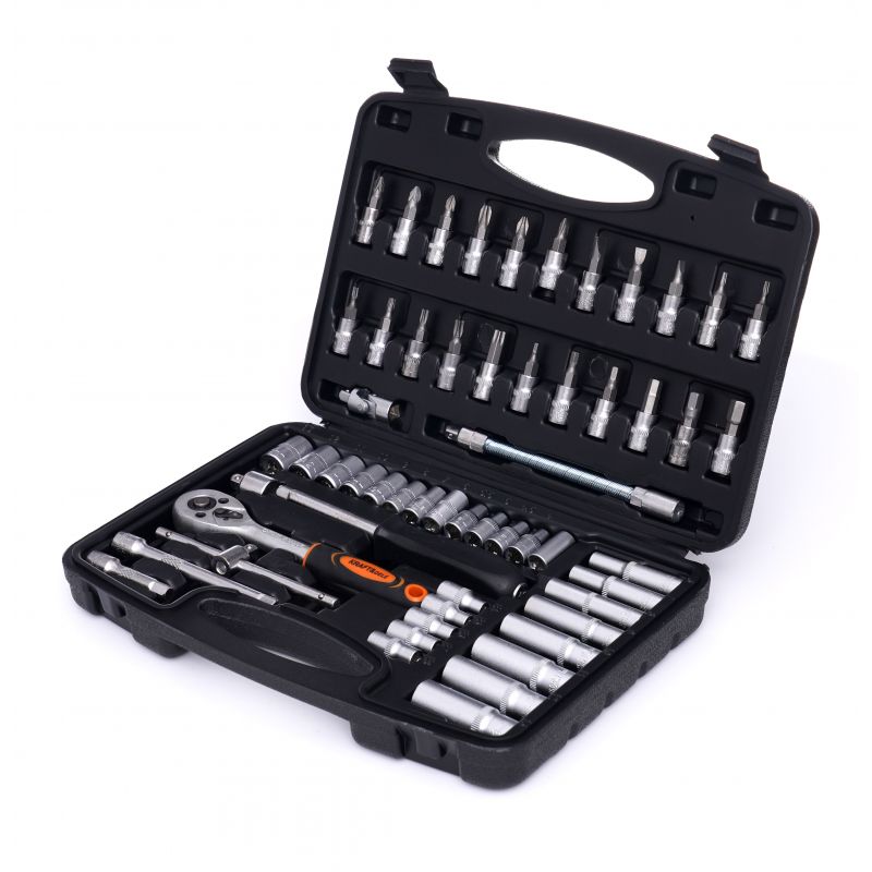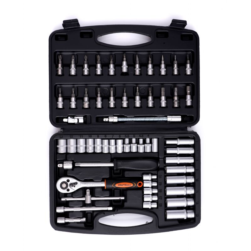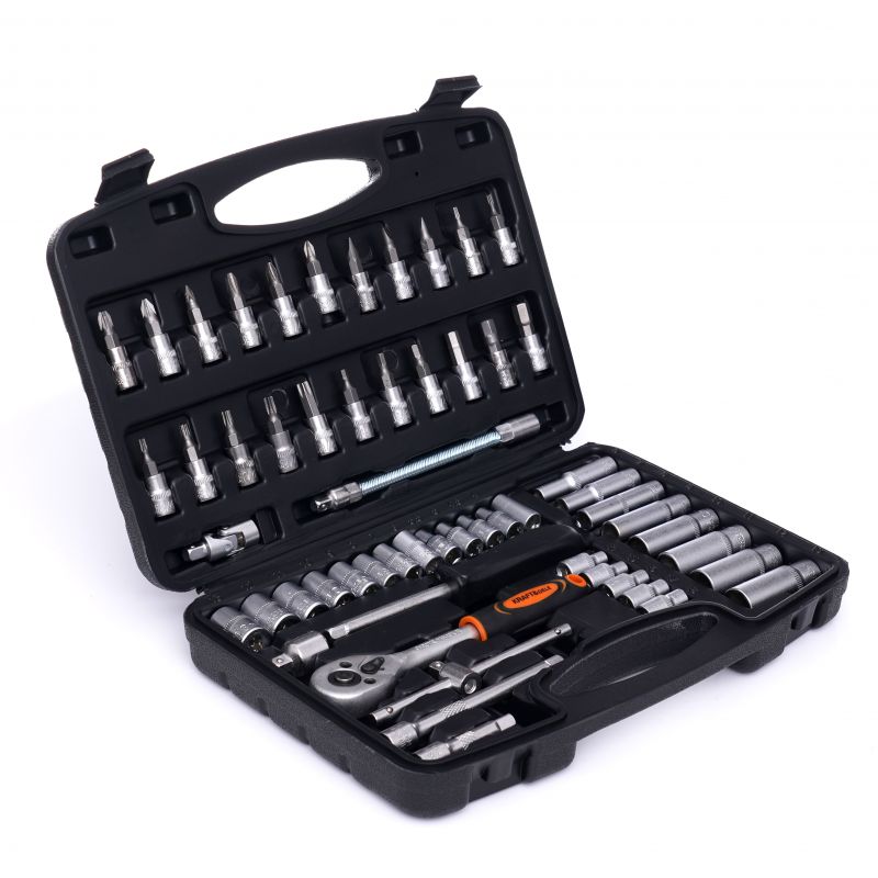 Celá sada pozostáva z 56 rôznych prvkov, ktoré zabezpečia správny výber náradia pre vaše potreby. Náradie je vyrobené z kalenej chróm-vanádiovej (CrV) ocele určenej pre dielenské náradie. Chróm zaručuje oceli odolnosť voči korózii, oxidácii, oderu a vysokú odolnosť voči vysokým teplotám. Prídavok vanádu inhibuje rast zŕn počas spracovania a zároveň zvyšuje ťažnosť tak kalených, ako aj temperovaných foriem.