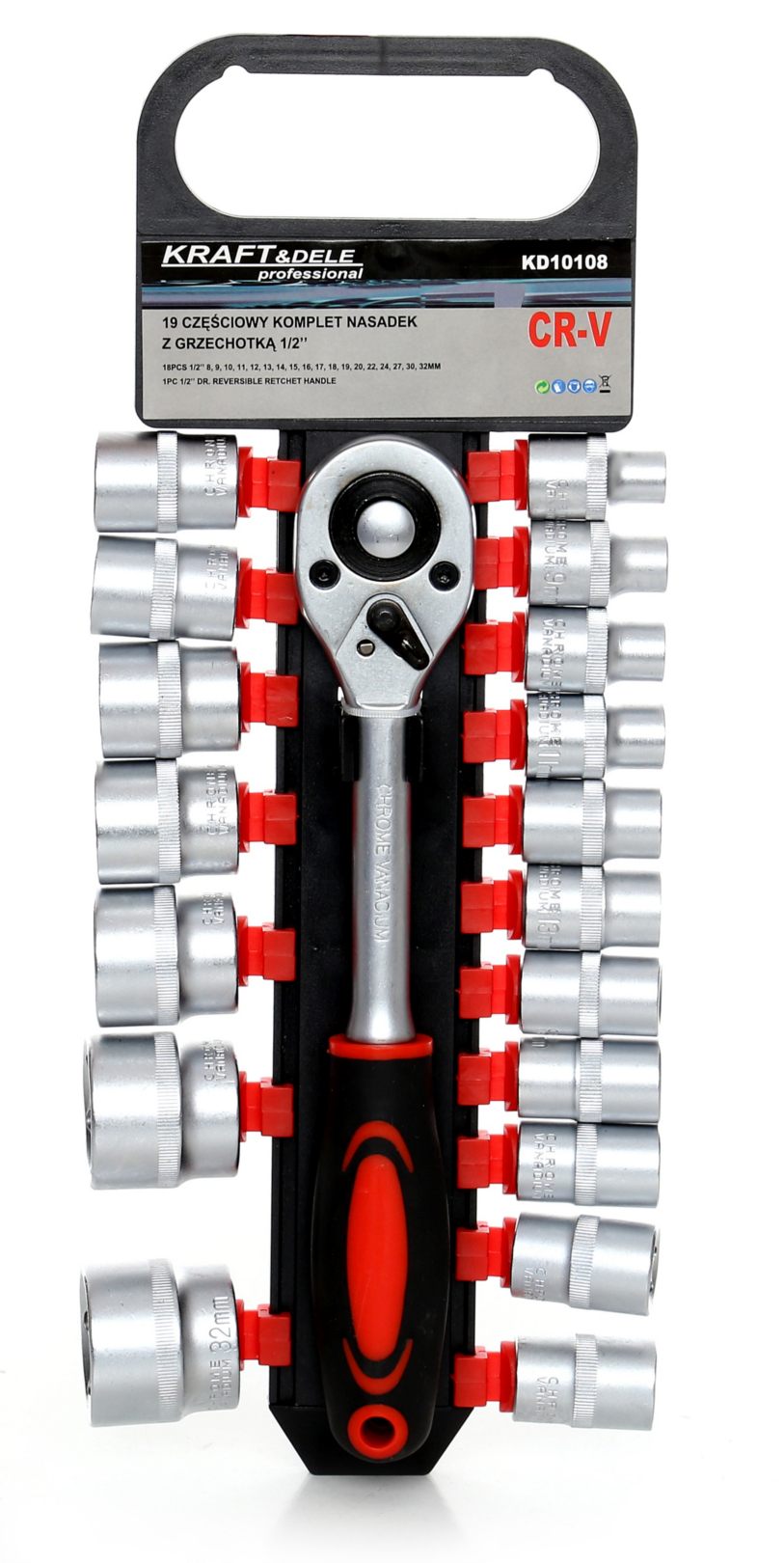• Sada nástrčných hlavíc s račňou 19ks 1/2'' KD10108