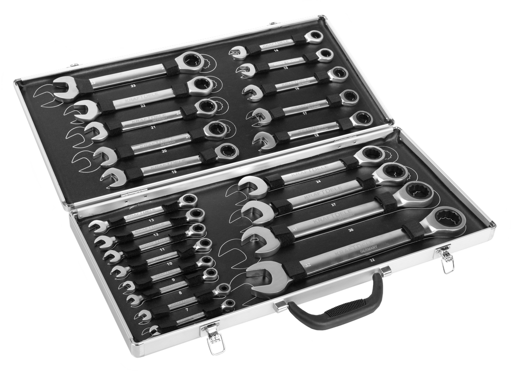 • Kľúče veľkosti: 6, 7, 8, 9, 10, 11, 12, 13, 14, 15, 16, 17, 18, 19, 20, 21, 22, 23, 24, 27, 30, 32 mm