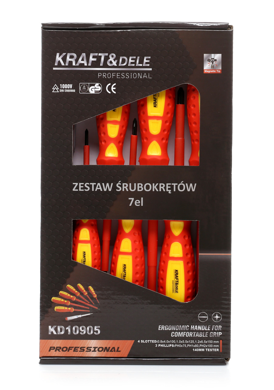 Skrutkovače sú z vysoko kvalitných materiálov, čo predlžuje ich životnosť. Sada obsahuje 7 prvkov a hodí sa do ktorejkoľvek garáže a dielne. Súčasťou sady je aj skúšačka napätia 140 mm.