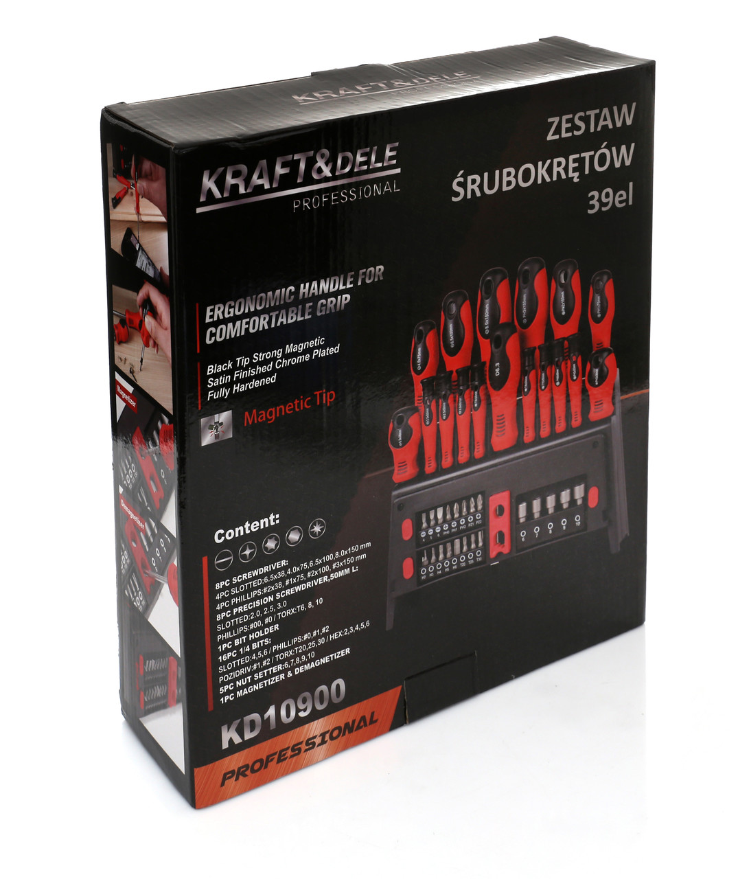 Skrutkovače sú z vysoko kvalitných materiálov, čo predlžuje ich životnosť. Sada obsahuje 39 prvkov a hodí sa do ktorejkoľvek garáže a dielne. Priložené puzdro uľahčuje skladovanie.