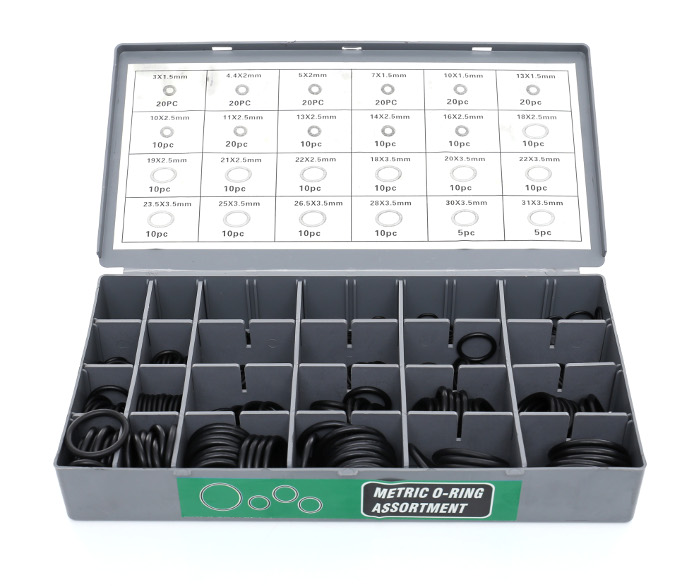 Sada tesniacich o-krúžkov značky Kraft&Dele, model KD10505 zabelená v plastovej krabičke, v ktorej má každá veľkosť svoje miesto.
