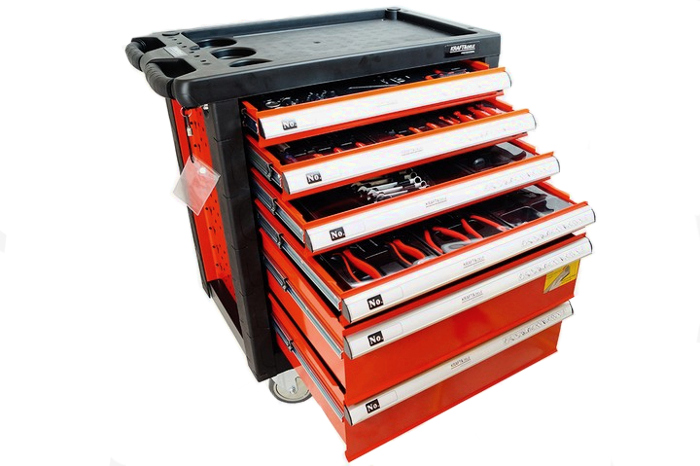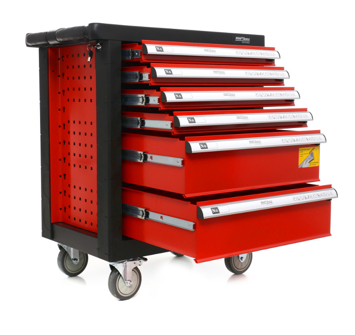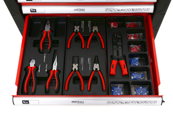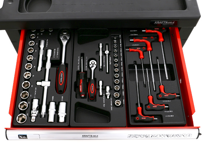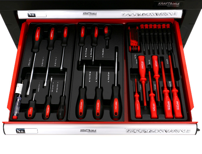 Skrinka na náradie Kraft&Dele, model KD361, je nevyhnutnou súčasťou v každej autodielni a garáži. Skrinka je vybavená sadou náradia, ktorá sa skladá až z 263 prvkov.