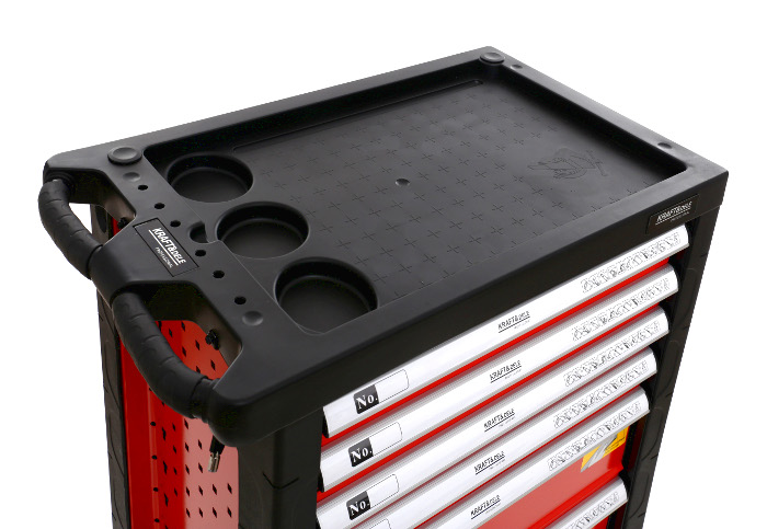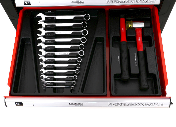 Všetky kľúče sú vyrobené z CrV (chróm-vanádovej) ocele. Skriňa je vybavená gumovými nárazníkmi a každá zásuvka je chránená proti náhodnému otvoreniu a je tiež uzamknutá kľúčom. Každá zo zásuviek je namontovaná na ložiskovej lište, vďaka čomu je jej otváranie hladké, tiché a odolné.