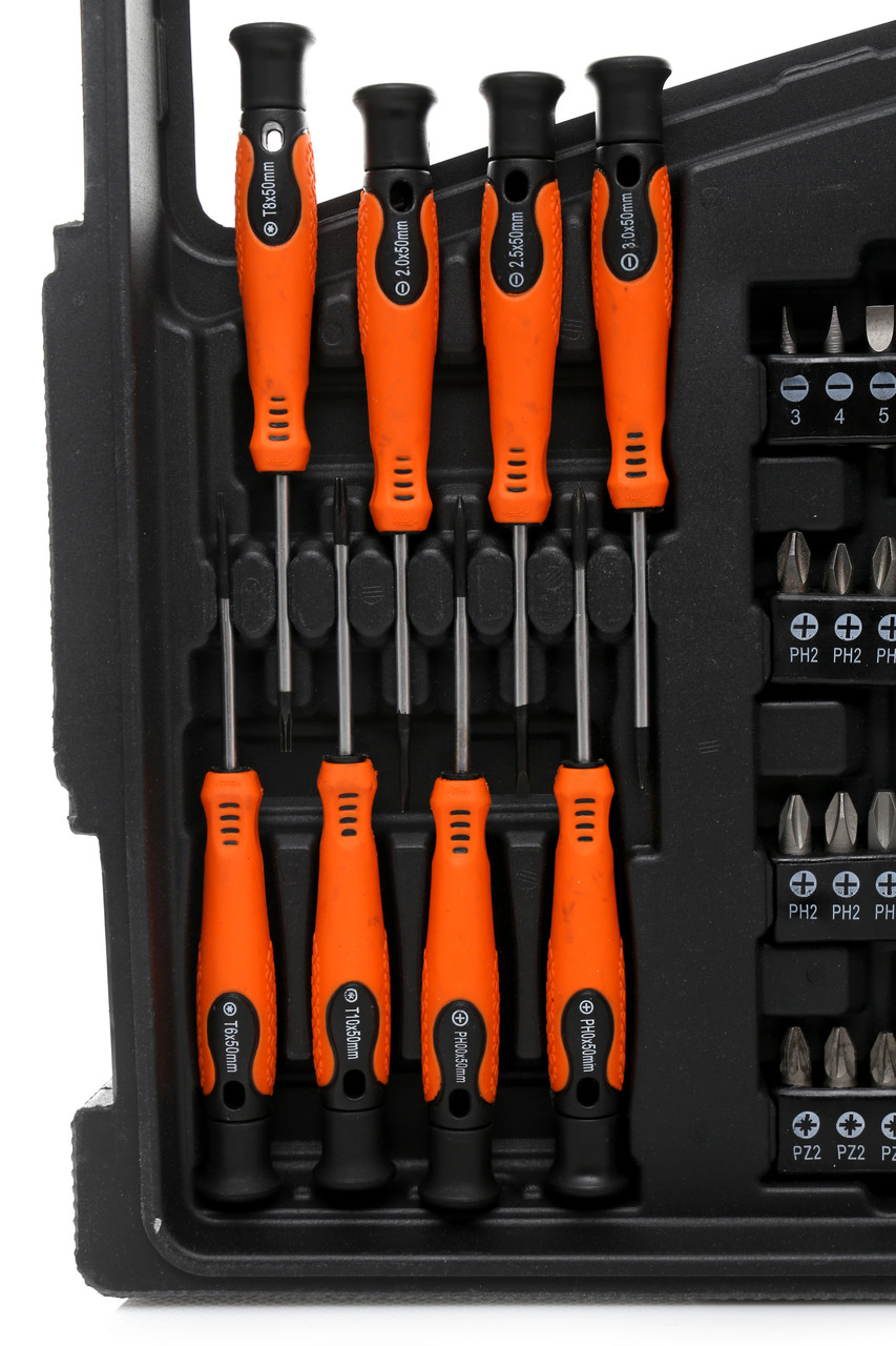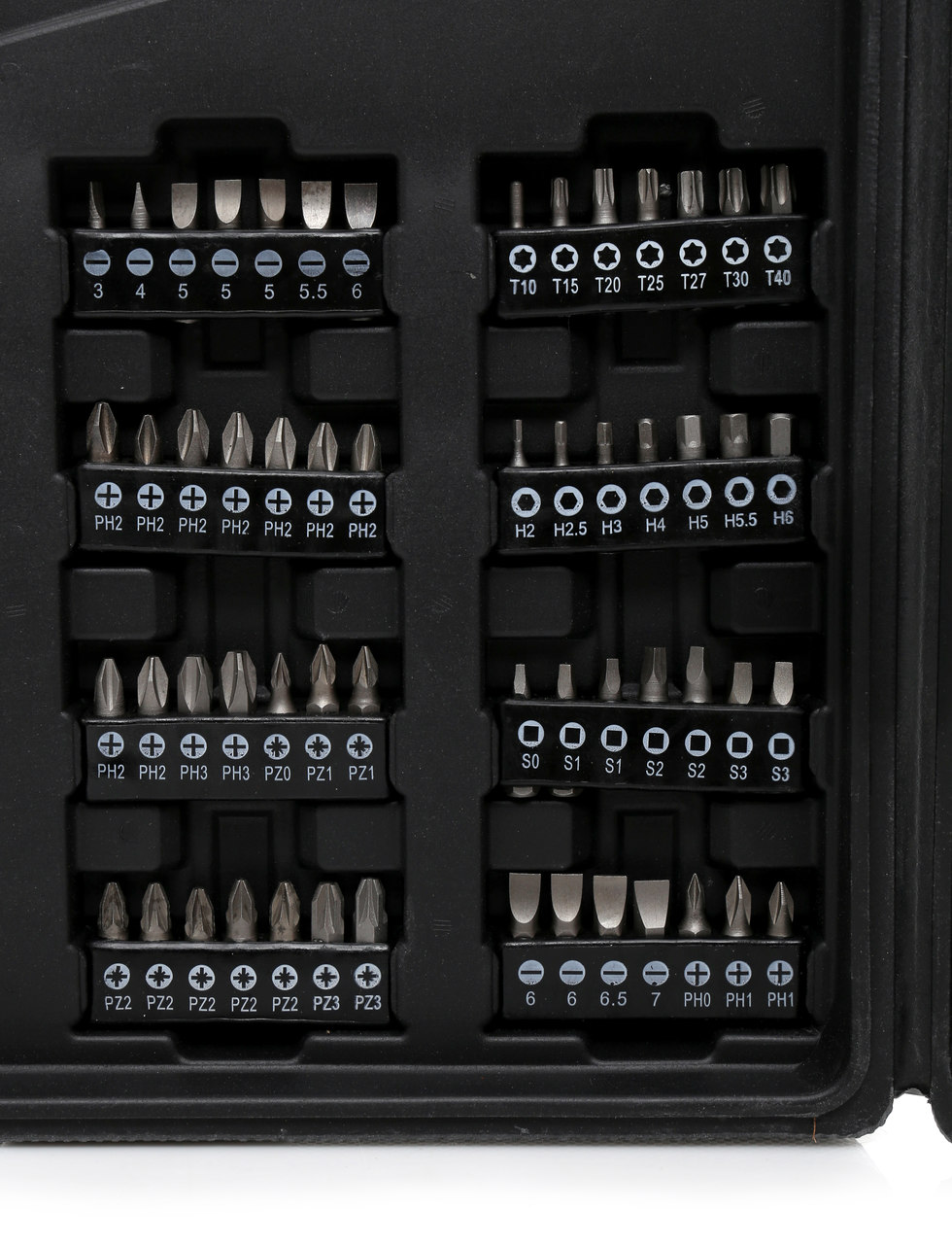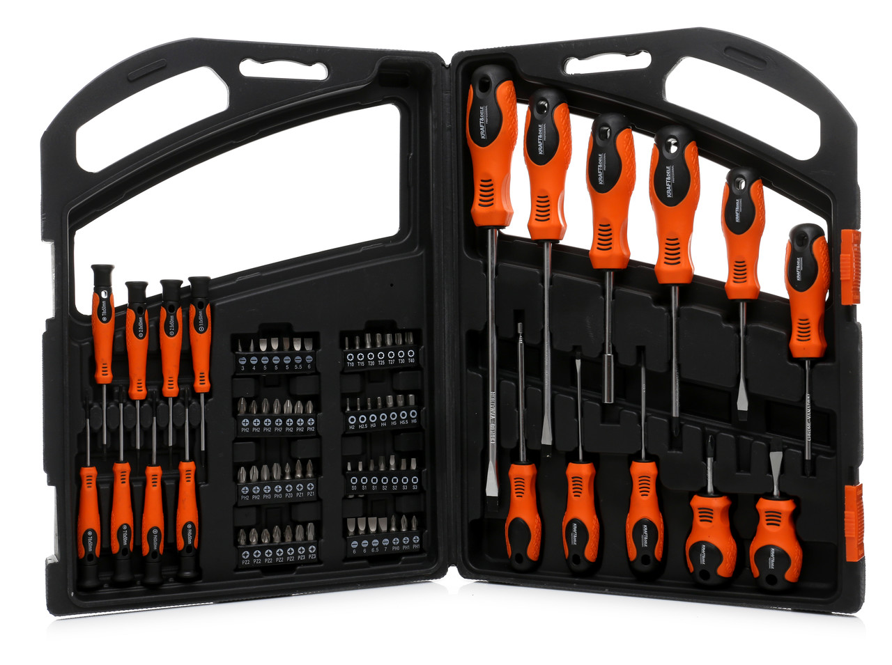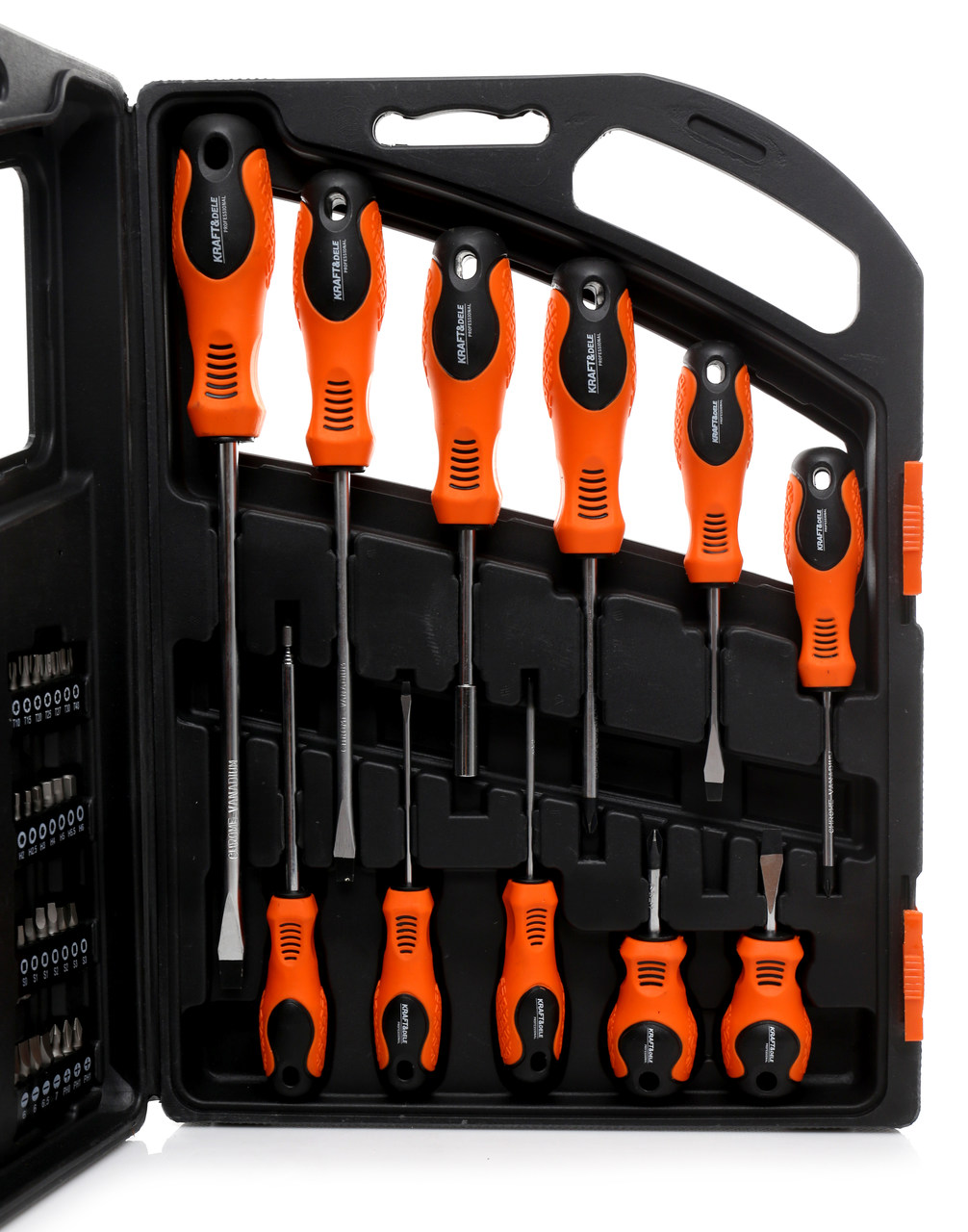 Skrutkovače sú z vysoko kvalitných materiálov, čo predlžuje ich životnosť. Sada obsahuje 75 prvkov a hodí sa do ktorejkoľvek garáže a dielne. Priložené puzdro uľahčuje skladovanie.