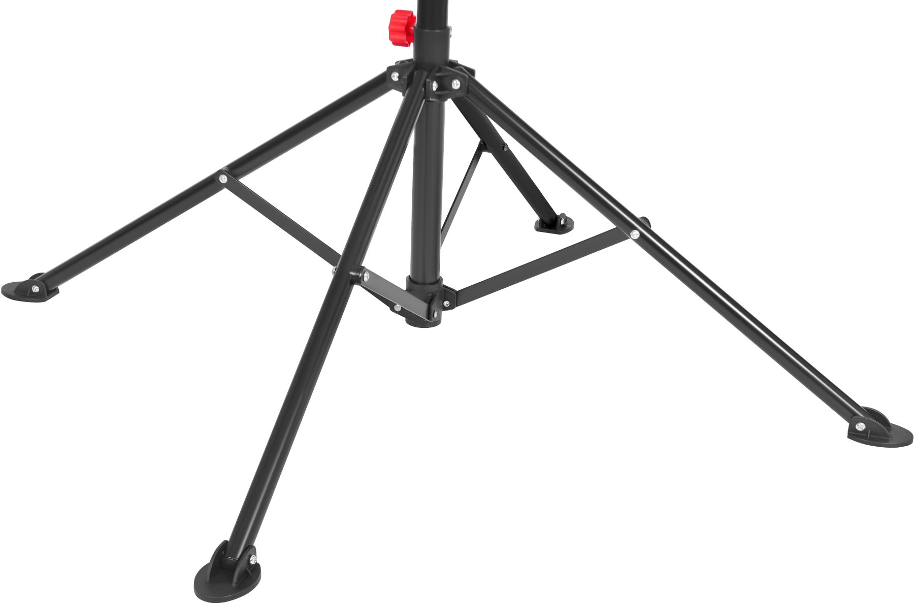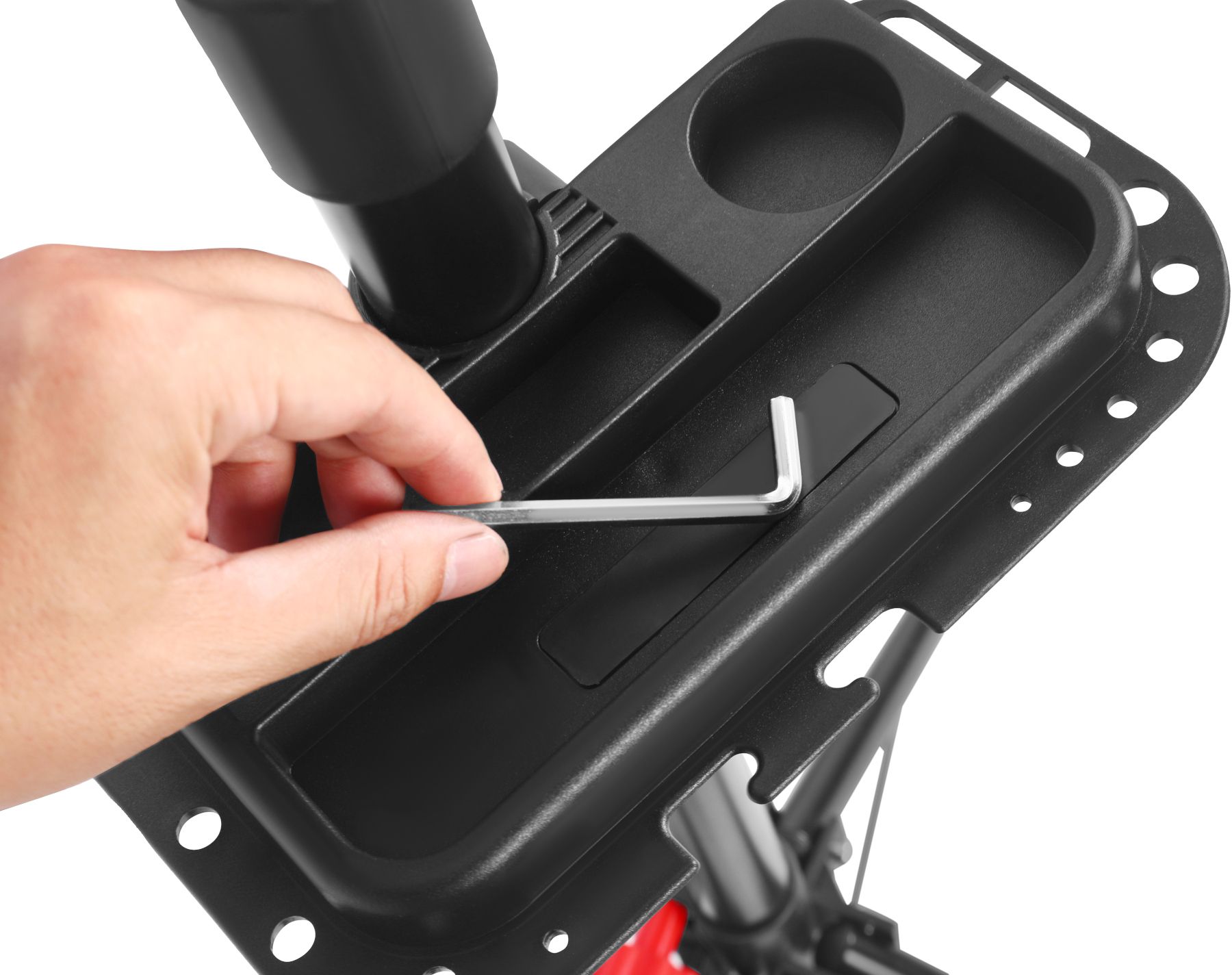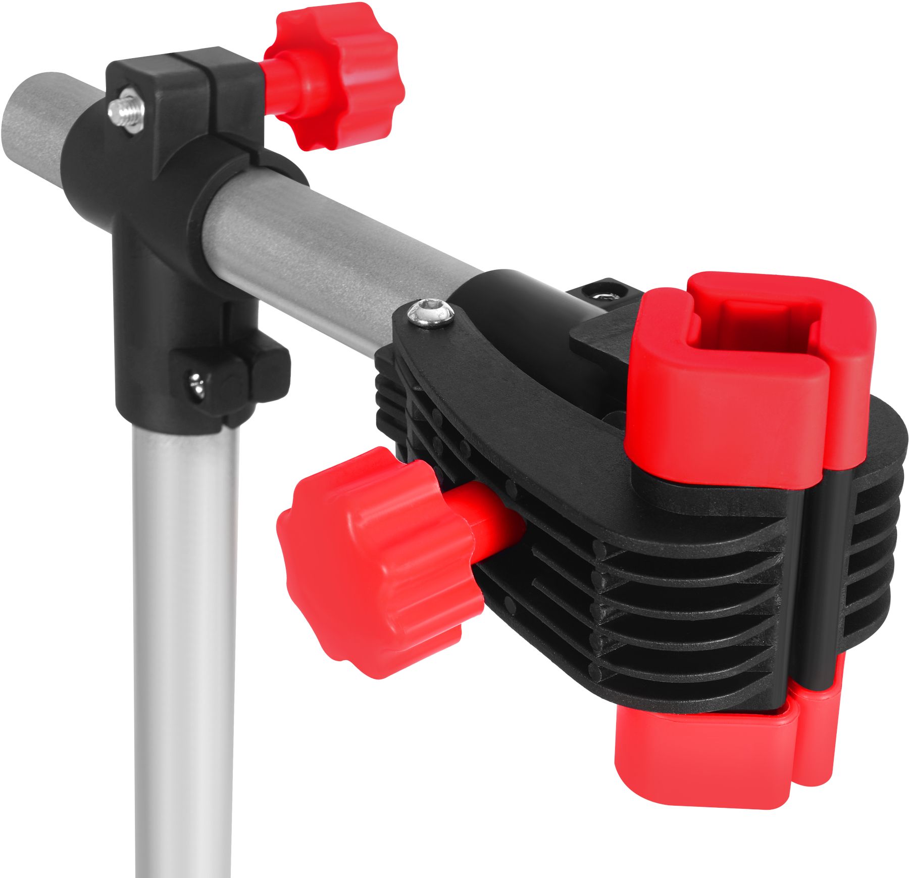 Nastaviteľná výška stojana a pogumované čeľuste chránia rám bicykla pred poškriabaním. Vstavaná polica na náradie a skrutky s magnetom vám umožní mať všetko poruke, čo výrazne uľahčuje servis.