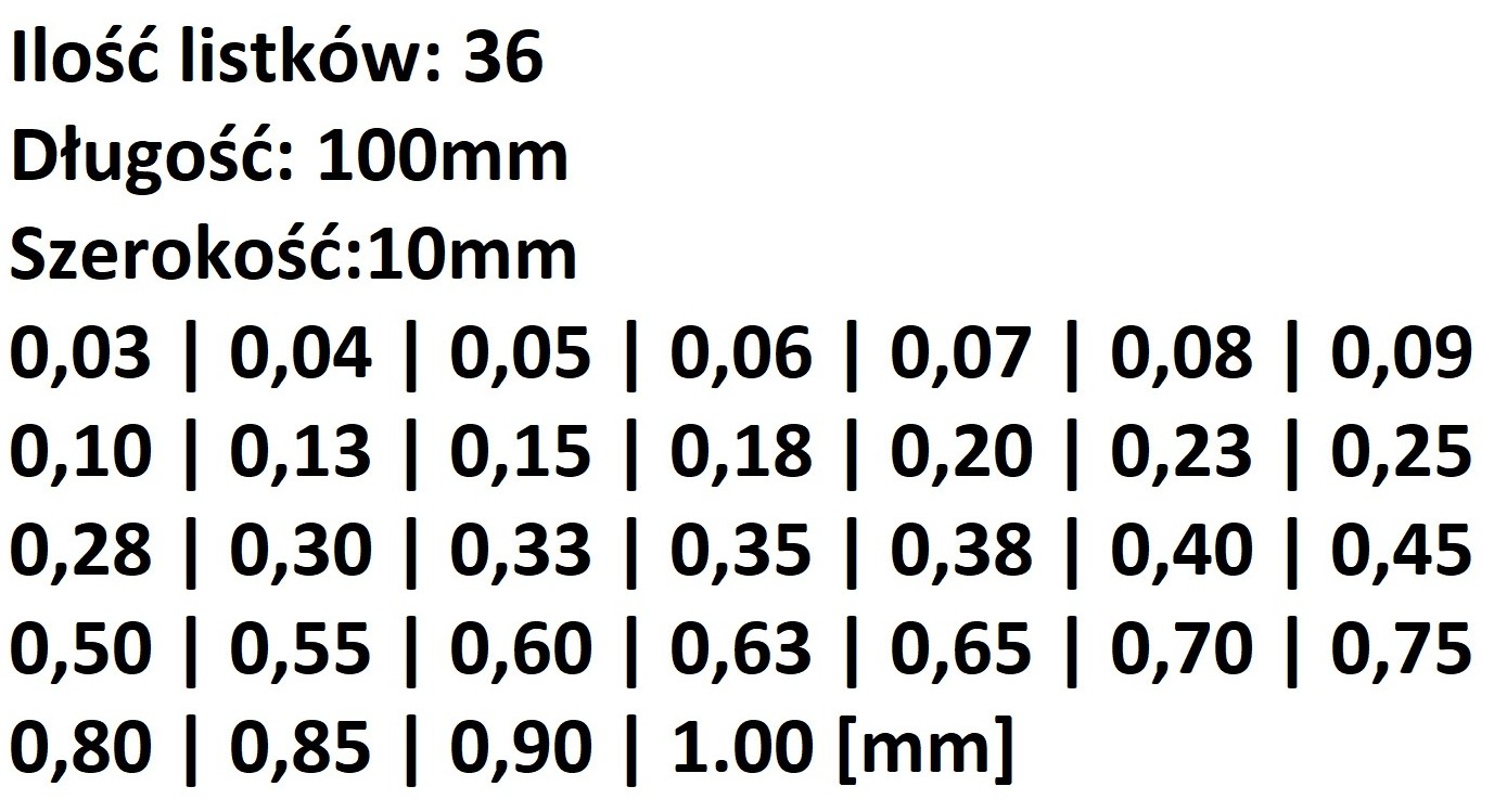 Kraft&Dele listový špáromer, model KD10561, je vyrobený z vysoko kvalitnej nehrdzavejúcej ocele. Rozsah hrúbky listu začína od 0,3 a končí pri 1,0 mm. Používa sa na meranie veľkosti medzier a medzier medzi prvkami. Najčastejšie sa používa na meranie vôle pri nastavovaní ventilov a medzery sviečok spaľovacích motorov Špecifikácia Ponúkame Vám veľmi výhodný záručný systém. Pri kúpe zariadenia s pokladničným dokladom a faktúrou s DPH poskytujeme záruku 12 mesiacov. Máme databázu dielov pre naše zariadenia.