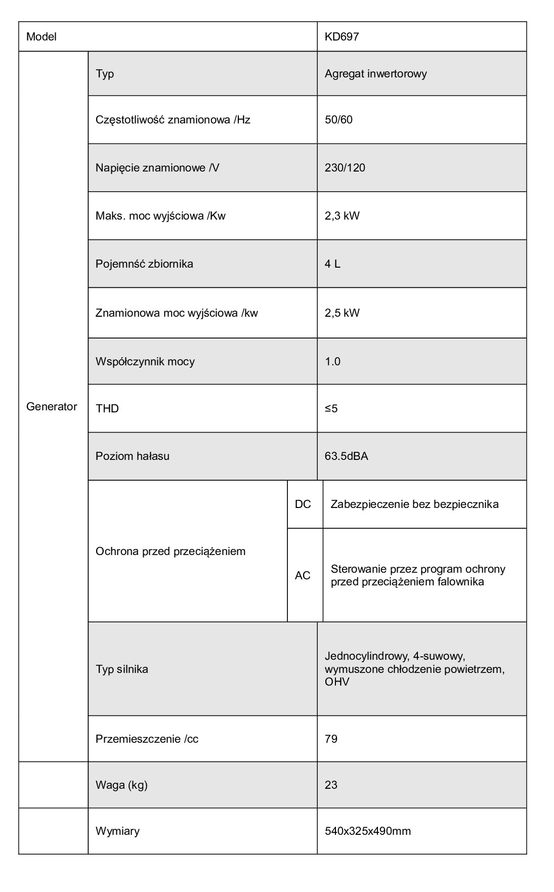 Súprava invertorového generátora 2,3kW / 2,5kW KD697