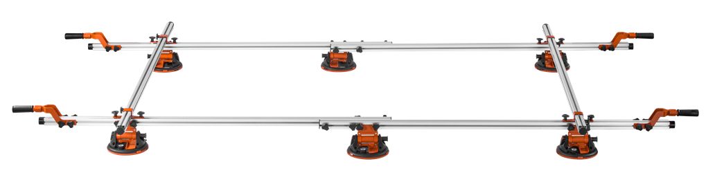 Vybavený šiestimi prísavkami s priemerom 20 cm a maximálnou nosnosťou až 150 kg zaisťuje bezpečné uchopenie a pohodlnú manipuláciu aj s ťažkými a veľkými povrchmi. Ľahká konštrukcia s hmotnosťou iba 29 kg a priložená prenosná taška uľahčujú skladovanie a prepravu systému.
