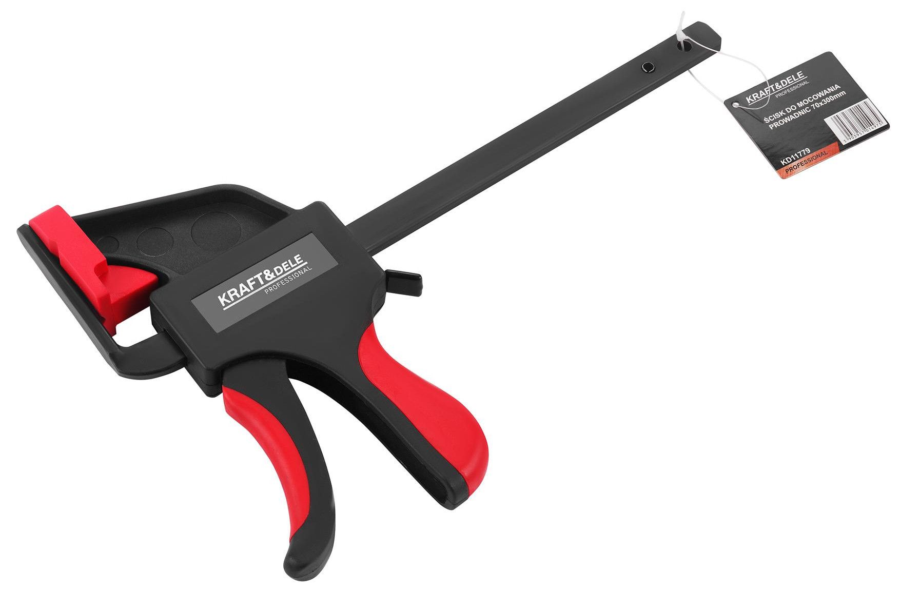Svorka 70x300 mm KD11779 je spoľahlivý nástroj určený na upevnenie vodiacich líšt počas presných tesárskych, montážnych a dielenských prác. Robustná konštrukcia zaisťuje stabilné a bezpečné uchytenie komponentov, čo uľahčuje presné polohovanie a spracovanie.