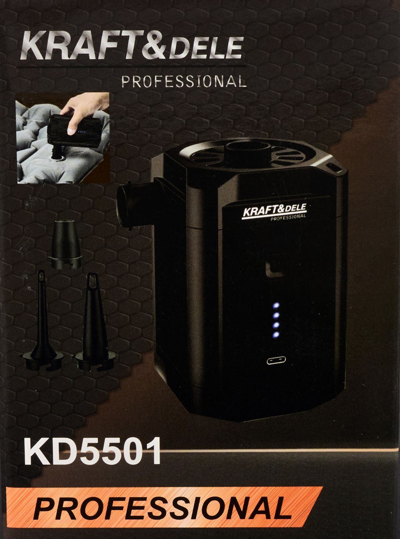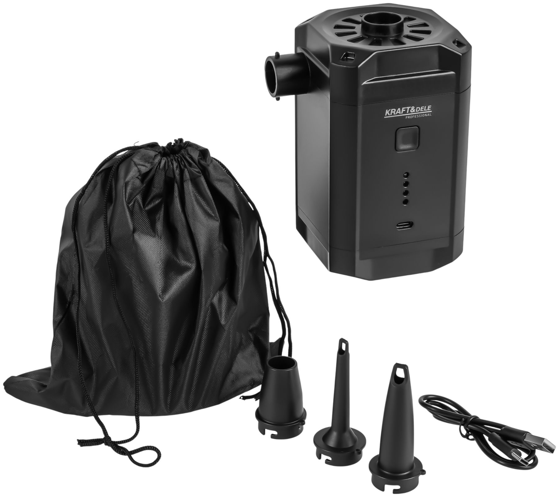 dobíjateľná pumpa; elektrická pumpa; cestovná pumpa; pumpa KD5501; pumpa na matrac; USB pumpa; mini elektrická pumpa; pumpa s tryskami;