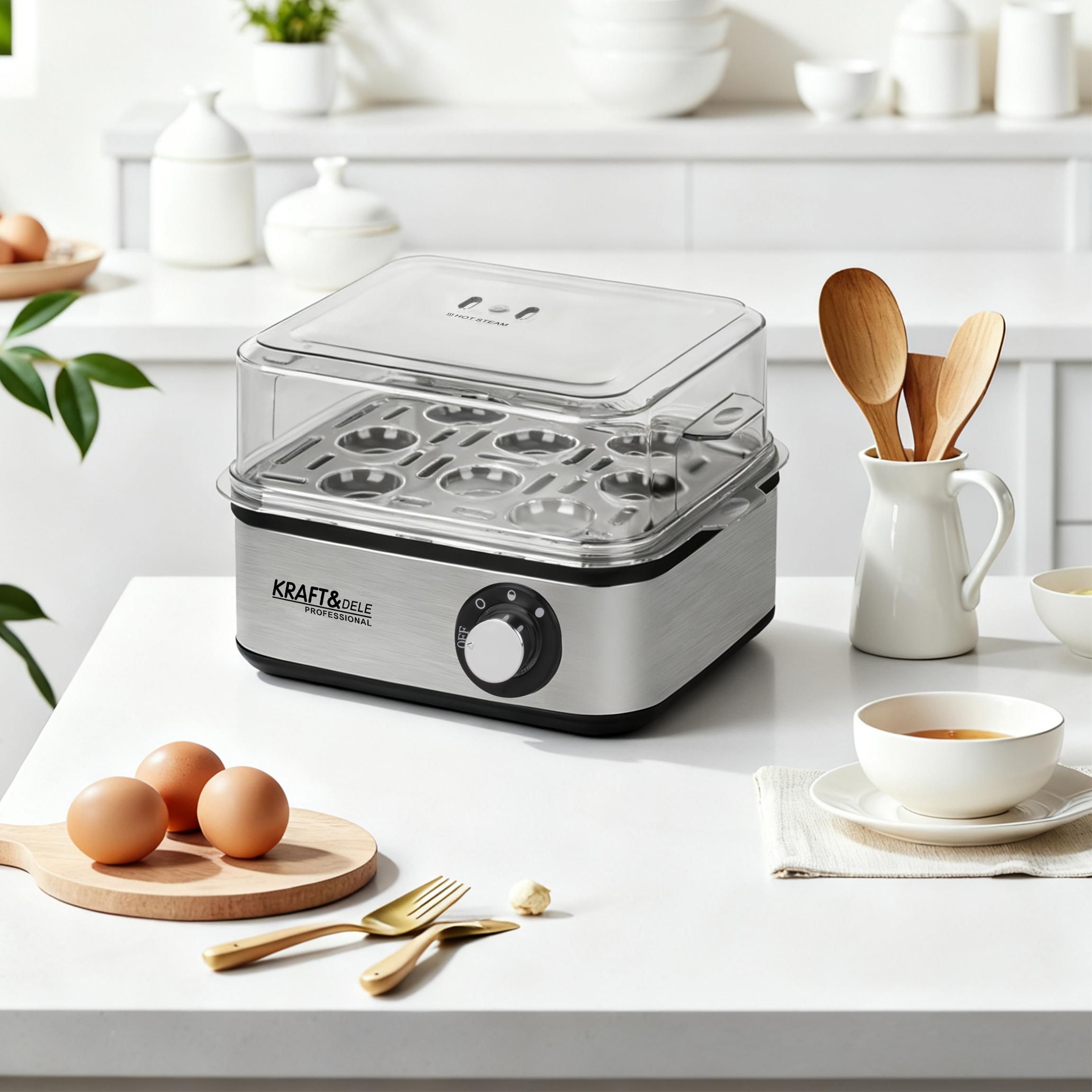 ✅ VARIČ VAJEC KD4118 – DOKONALÉ VAJCIA ZAKAŽDÝM Varič vajec KD4118 je praktické zariadenie, ktoré vám umožňuje rýchlo a rovnomerne uvariť až 8 vajec naraz. Či už uprednostňujete vajcia na mäkko, stredne uvarené alebo natvrdo, s týmto zariadením ich vždy uvaríte dokonale bez toho, aby ste museli dohliadať na hrniec.