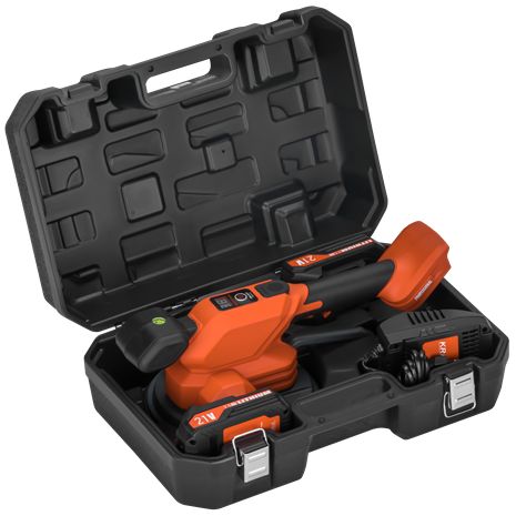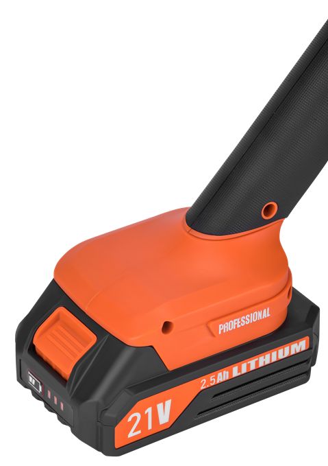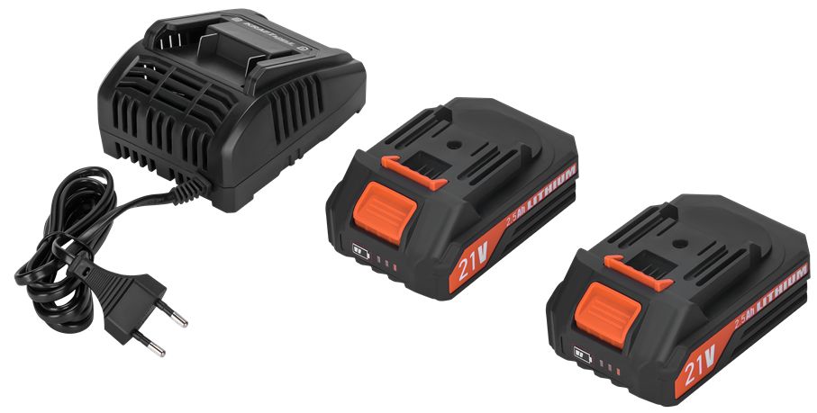 Model KD11967 je vybavený výkonnou batériou 21 V, 2,5 Ah, ktorá umožňuje dlhú prevádzku bez potreby zdroja napájania. Sada obsahuje aj nabíjačku 230 V / 50 Hz pre rýchle nabíjanie.
