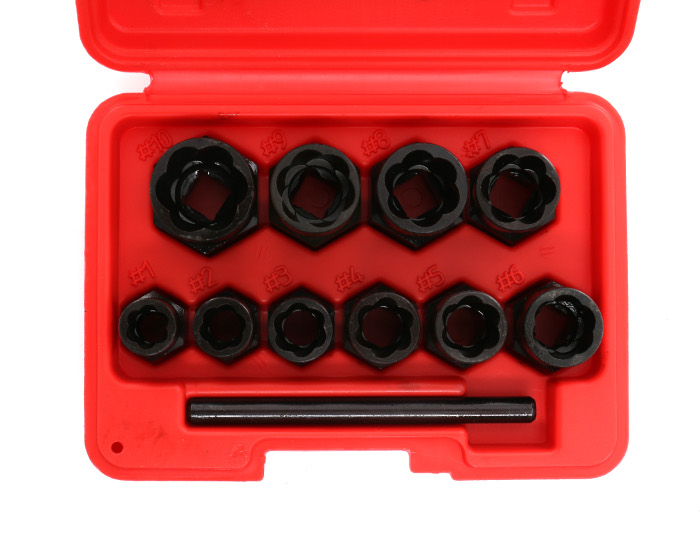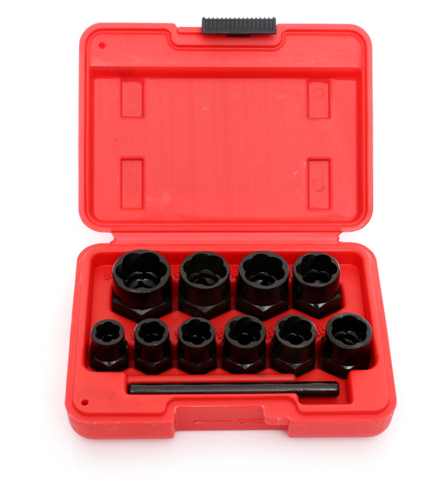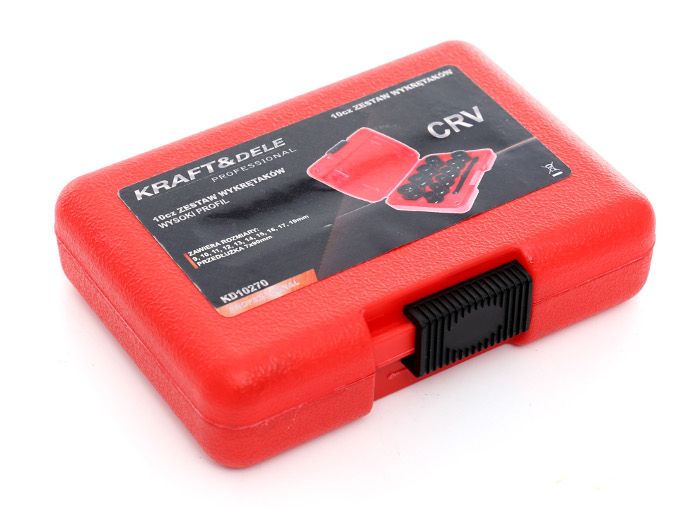 ada 10 vykružovačov značky Kraft&Dele model KD10270 obsahuje hlavice na poškodené skrutky v 10 veľkostiach: 9, 10, 11, 12, 13, 14, 15, 16, 17 a 19 mm.