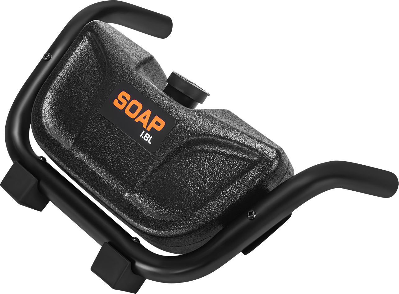 Robustný kovový rám, veľké pneumatické kolesá a ergonomická rukoväť zaisťujú pohodlnú prepravu a stabilitu počas prevádzky. Vstavaná nádrž na čistiaci prostriedok s objemom 1,8 l umožňuje efektívne využívanie čistiacich prostriedkov a sada 4 vymeniteľných trysiek umožňuje prispôsobiť prietok vody rôznym úlohám.