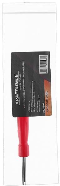 Vyťahovač ventilov KD5909 je praktický nástroj určený na montáž a demontáž ventilových jadier v pneumatikách automobilov, motocyklov, bicyklov a priemyselných pneumatík. Nevyhnutný v pneuservisoch, mobilných opravovniach a v domácej garáži. Kompaktný dizajn umožňuje rýchly a presný prístup k ventilu, a to aj na ťažko dostupných miestach.